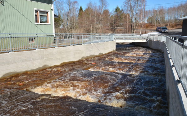 Isojoki ohitusuomassaan entisen Villamon padon kohdalla. Taimenten radiolähetinseurannalla selvitetään nouseeko meritaimen Villamon uutta vaellusyhteyttä pitkin Isojoen latvaosiin vuosikymmenten tauon jälkeen. Kuva: Panu Orell.