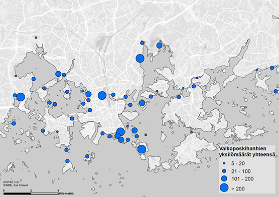Helsingissä poikueita havaittiin eniten Suomenlinnassa (29 poikuetta), Kaivopuistossa (26 poikuetta), Arabianrannassa (23 poikuetta), Töölönlahdella (19 poikuetta) ja Vanhankaupunginlahdella (13 poikuetta). Vanhankaupunginlahden osuus poikueista kasvoi selvästi aikaisemmista vuosista.