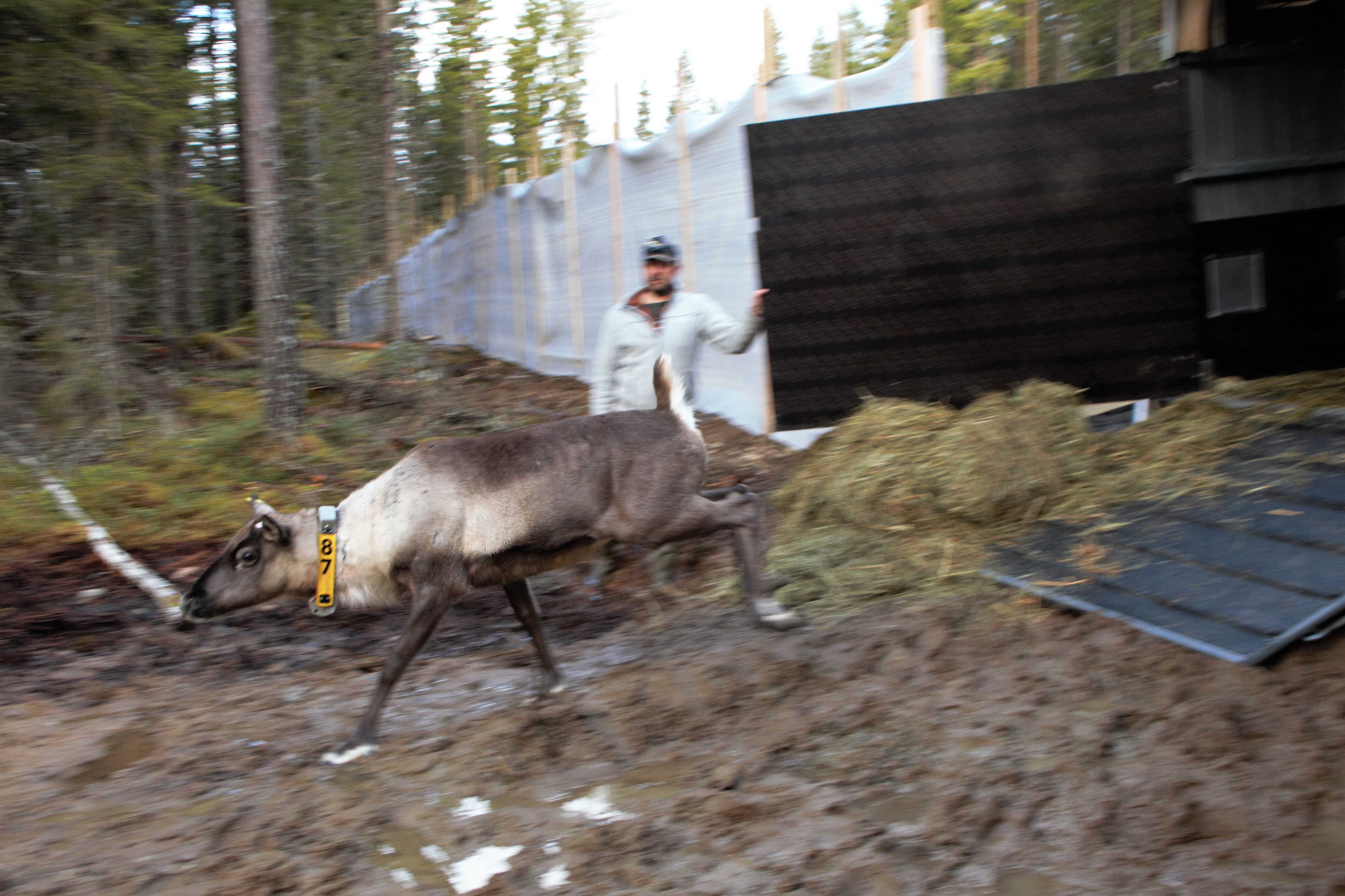 Seitsemisen totutustarhaan tuotiin kaksi villiä metsäpeuraa. Jatkossa ne saavat seurakseen eläintarhassa kasvaneita yksilöitä. Luukkua pitelemässä projektipäällikkö Sakari Mykrä. kuvaaja Milla Niemi