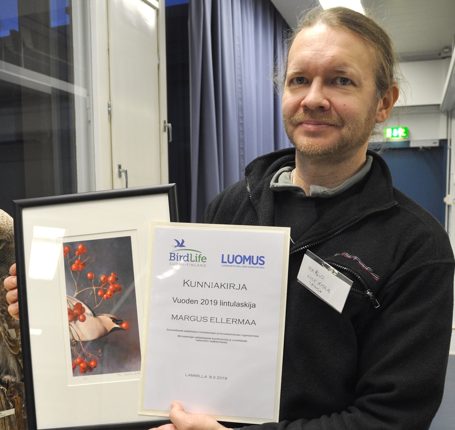 BirdLife Suomi ja Luonnontieteellinen keskusmuseo Luomus valitsivat vuoden 2019 lintulaskijaksi Helsingin Seudun Lintutieteellisen Yhdistyksen Tringan Margus Ellermaan.